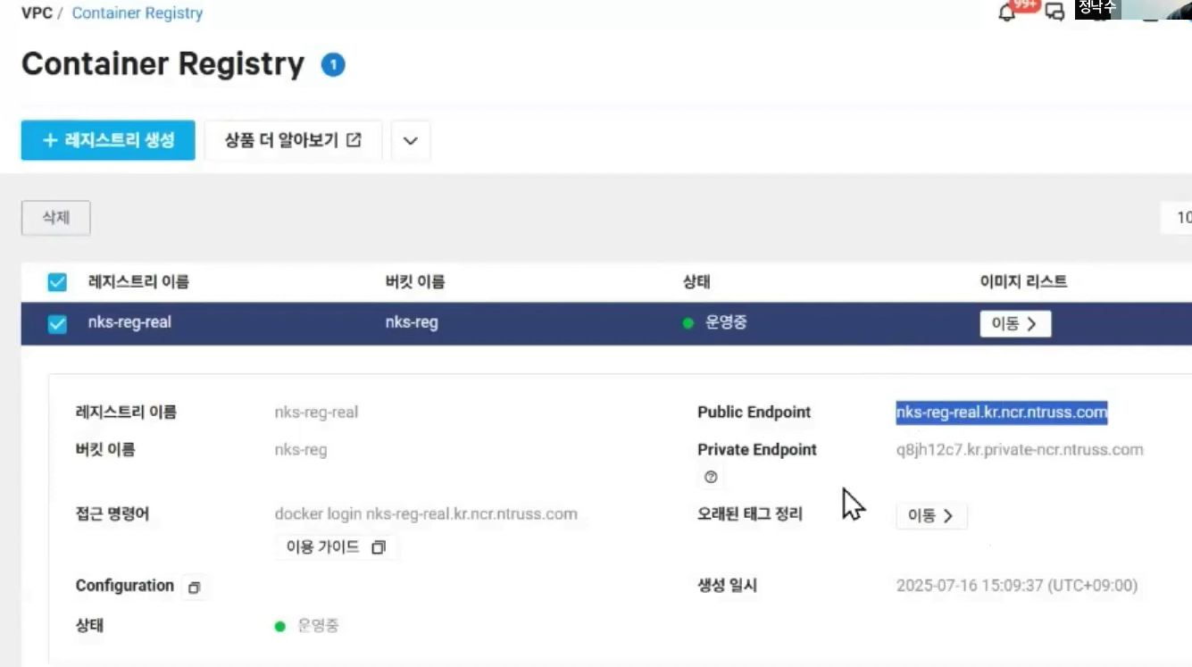 docker push nks-reg-real.kr.ncr.ntruss.com/image_apache:1.0