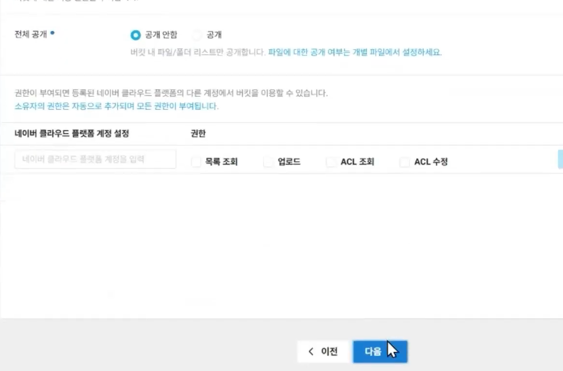 ## 컨테이너 레지스트리용 버킷 생성