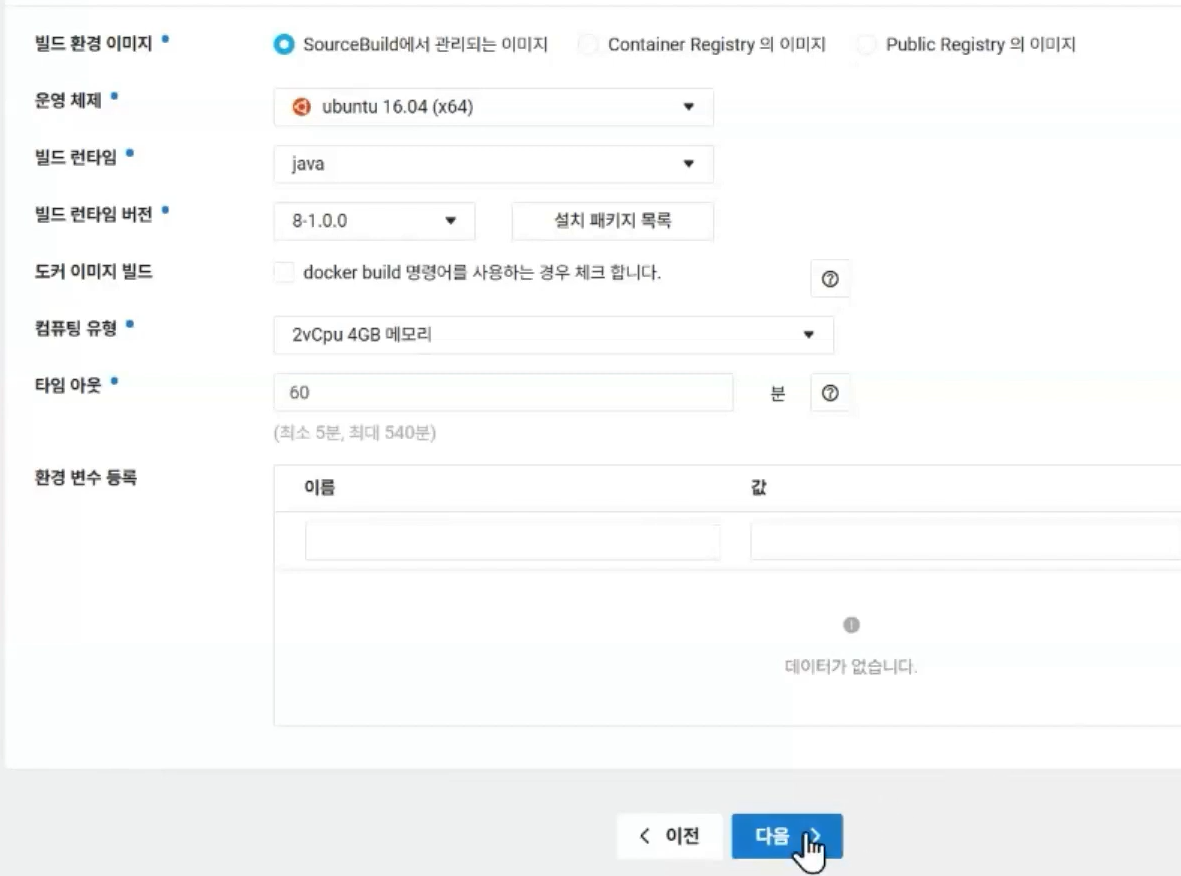 2. SourceBuild 설정 (설정 전에 버킷 생성 필요 - 빌드된 저장소)