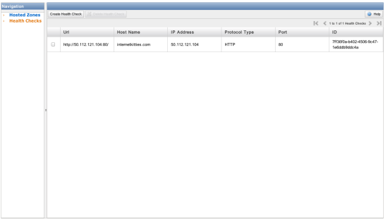 Route 53 콘솔 의 왼쪽 탐색 모음에서 상태 확인 을 클릭한 다음 상태 확인 생성 버튼을 클릭합니다.