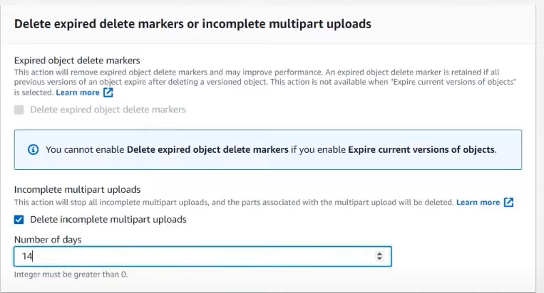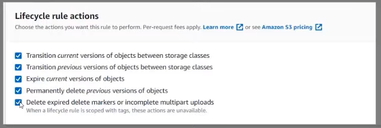 - 만료된 객체 삭제 마커 또는 완료되지 않은 멀티파트 업로드 삭제