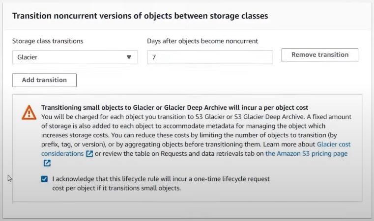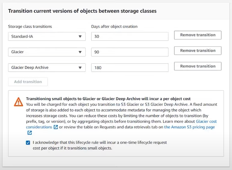 - 스토리지 클래스 간에 객체의 현재 버전 이동