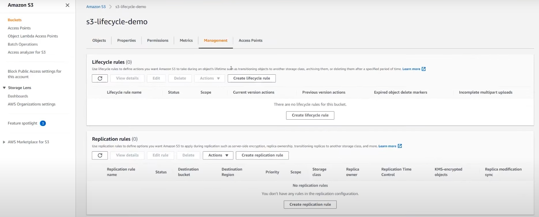 ## 해당버킷 --> 관리 --> Create lifecycle rule