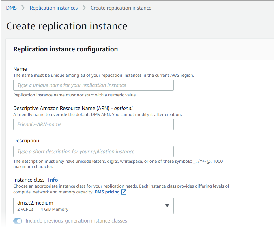 1. 복제 인스턴스 생성AWS DMS콘솔