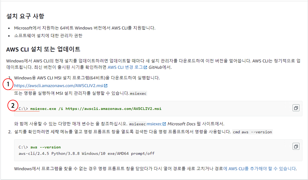 1. 링크를 입력해서 AWS CLI 설치가 가능하다.