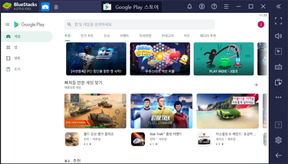 블루스택에서 삼성의 갤럭시 스토어 게임을 이용해도
