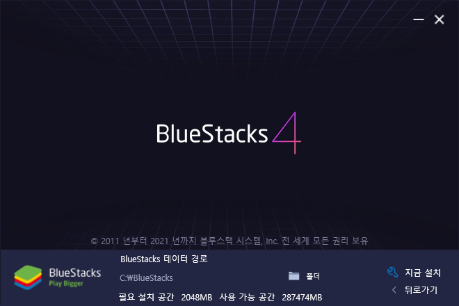 설치가 완료되면 바로 블루스택이 실행 됩니다.