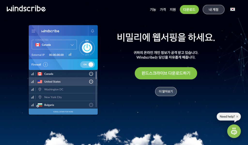 기본적으로 VPN에서 필요한 IP 주소 숨기기 그리고 암호화된 데이터를 기반으로 보호하는등 기본 기능은 잘 수행되는 서비스입니다.