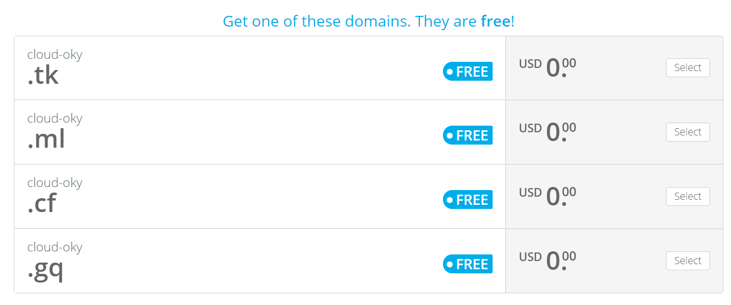 참고로 무료로 제공하고 있는 도메인은 .tk / .ml / .cf / .gq / .ga 입니다.
