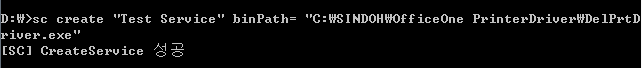 sc create "OOO service" binPath= "C:\SINDOH\OfficeOne PrinterDriver\DelPrtDriver.exe"