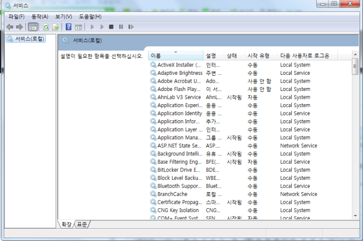 ▲ 윈도우 서비스(여기 리스트에 추가 시키는 방법)
