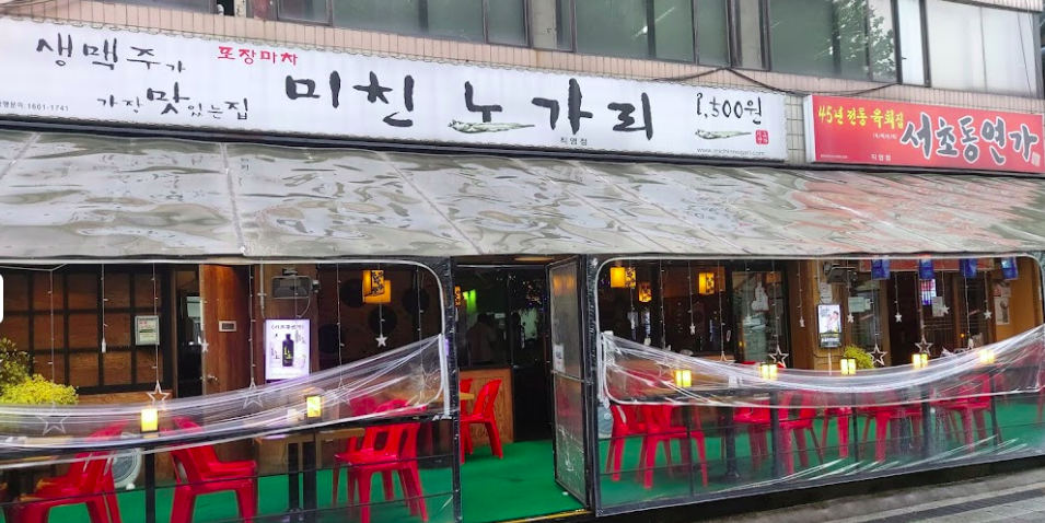 양재역과 양재시민의 숲역 사이에 미친 노가리라는 가게게 있다.