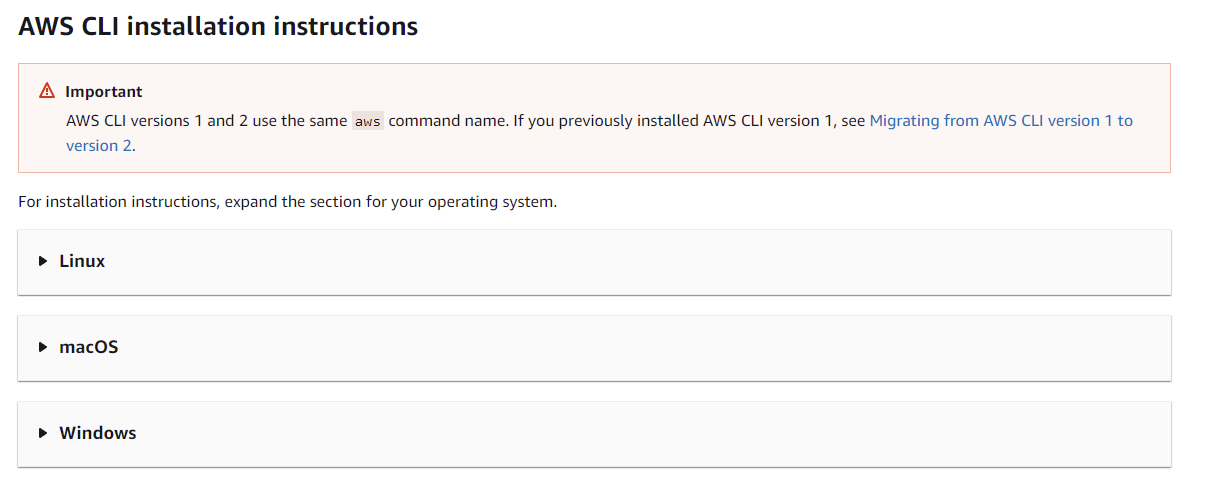 AWS CLI에 대한 간단 설명과 함께 하단에 OS에 따른 선택을 한다.