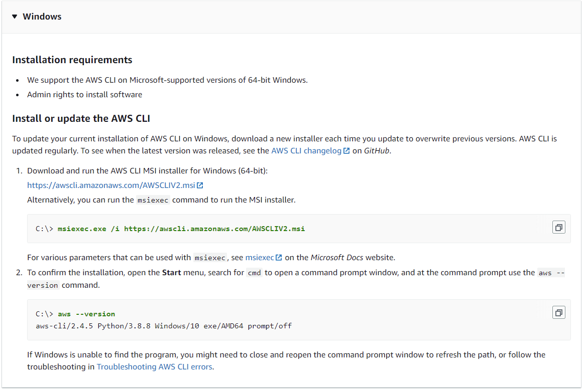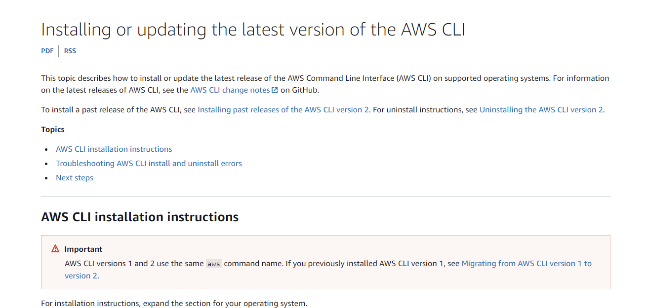우선 AWS Command Line으로 검색하면 AWS 사이트가 확인된다.
