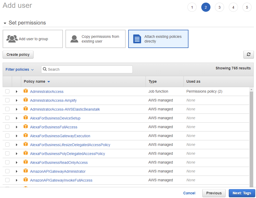 하단에 Select AWS Access Type중에 Access key - Programmatic access를 클릭하여 해당 계정은 CLI로 사용할것임을 체크한다.