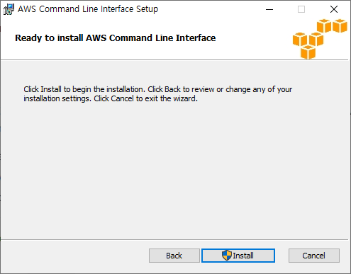 Install/Update를 클릭하여 AWS CLI를 설치하는 화면으로 넘어가도록 하자.