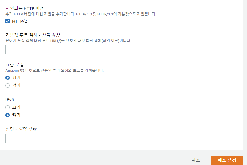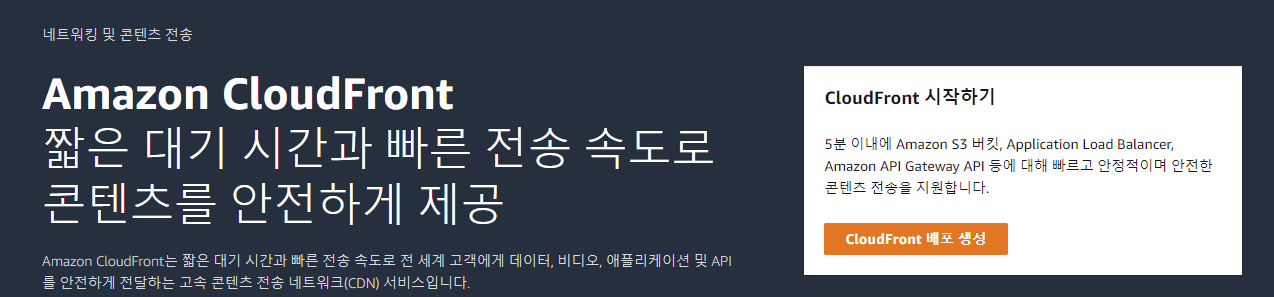 CloudFront에 들어간 후 배포 생성을 클릭한다.