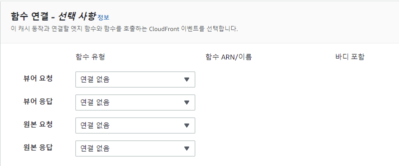 뷰어 프로토콜 정책을 Redirect HTTp to HTTPS로 설정했다. 우리는 ACM에서 인증서 생성을 완료했기 때문에 HTTP보다는 더욱 안전한 HTTPS로 연결을 하게 하려고 설정했다.