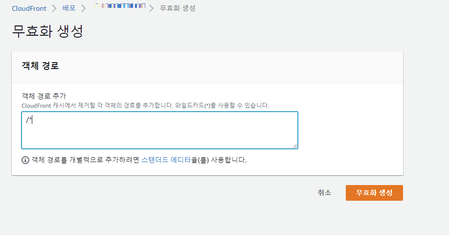 내가 생성한 CloudFront에 가서 무효화 탭을 클릭한다.