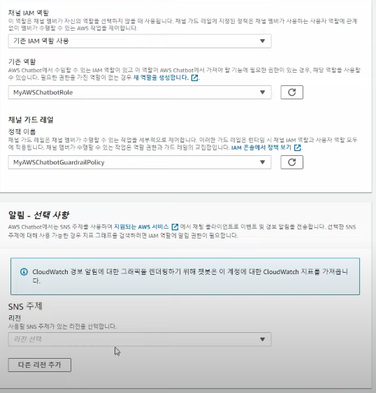 알림은 선택사항이므로 만약 슬랙이나 메일을 통해서 알림을 받고 싶으면 SNS 주제를 선택해 주면 된다.