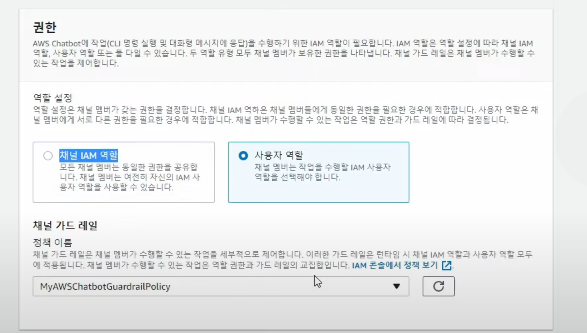 그 후 채널 IAM 역할을 아까 만들어 둔 역할을 선택 하고 채널 가드레일 역시 아까 생성했던 정책을 넣어주면 된다.