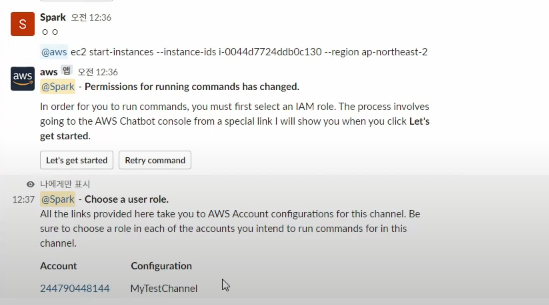만약 다시 채널 역할로 바꾼 후 Spark라는 이용자가 CLI 명령어를 입력한다면