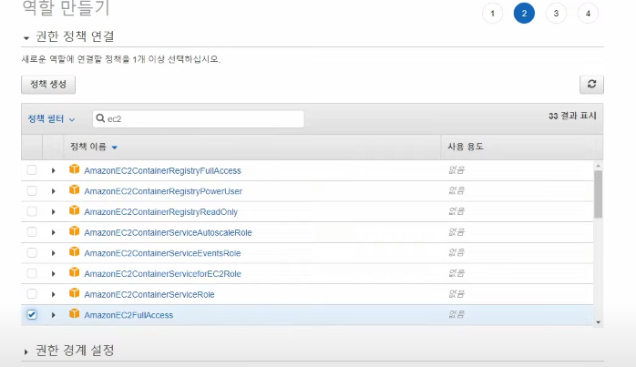 여기서는 EC2에 대한 권한을 사용할 것이기 때문에 EC2 FullAccess를 부여해 준다. 그 후 태그를 적당히 선택하고 역할 이름을 생성한 후 생성을 완료 해 준다.