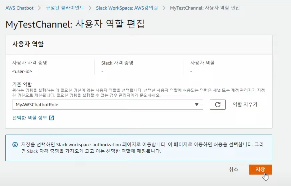 편집에 들어가서 권한을 채널 IAM 역할에서 사용자 역할로 수정한다.