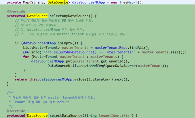 선택한 datasource라는 글자의 background color가 모두 형광색으로 변경된다.