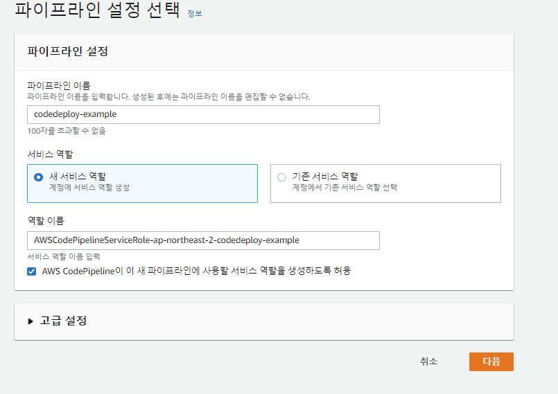 그 후 이름을 입력해 준다. 서비스 역할도 새로 생성해 준다.