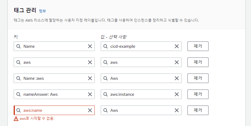 다음 중 인스턴스에 태그를 추가할 때 적합한 태그 키/값 조합이 아닌 것은 무엇입니까?