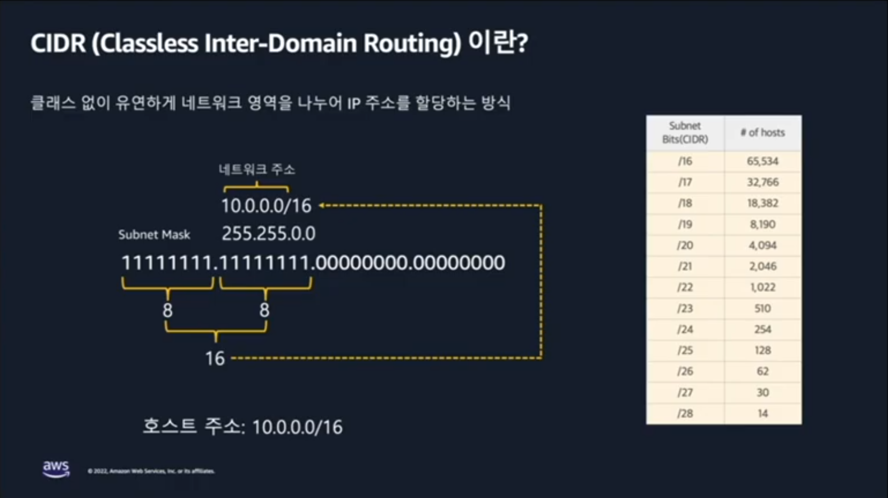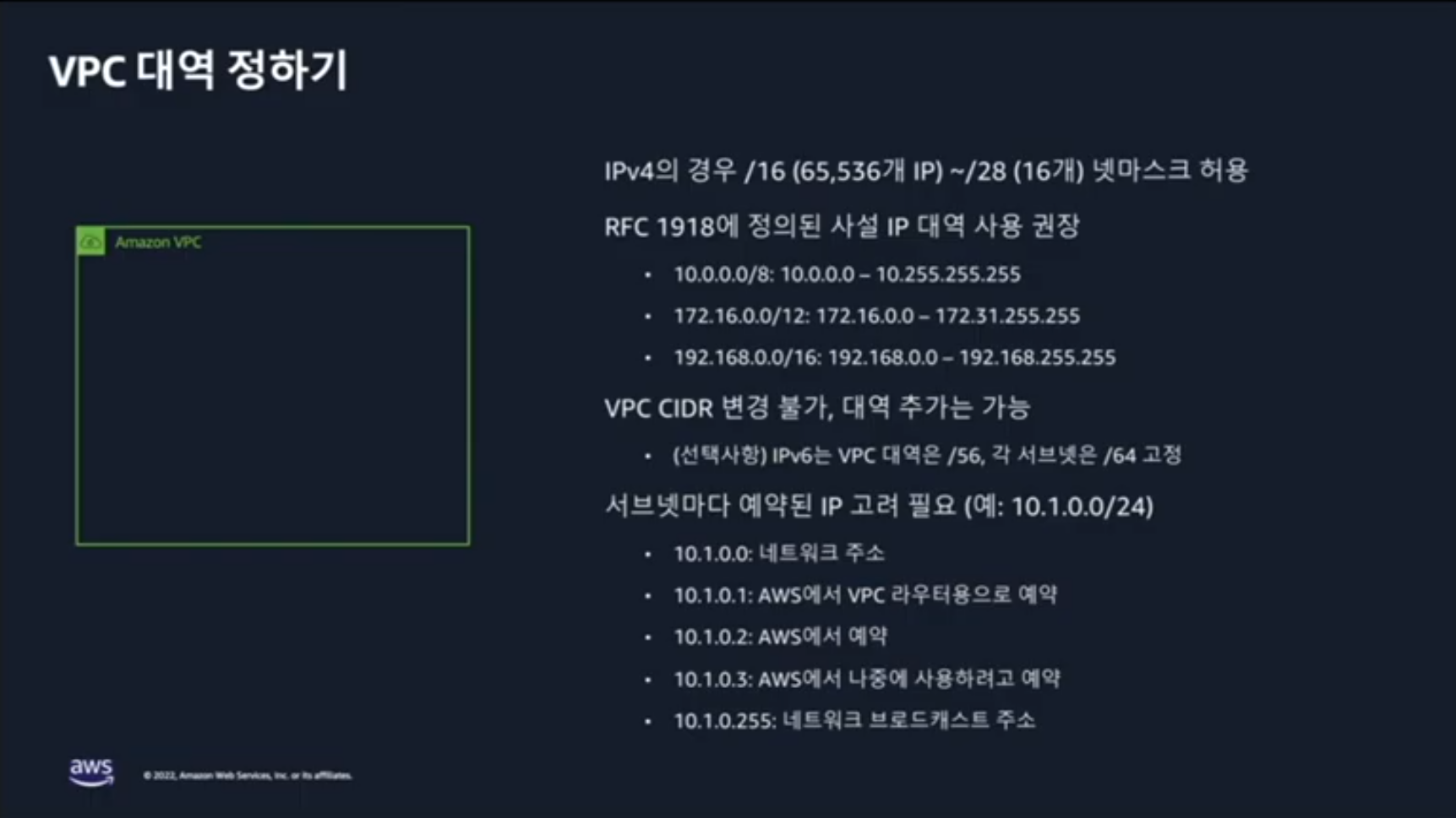 VPC의 대역을 정하기 위해서는 위의 CIDR가 중요하다.