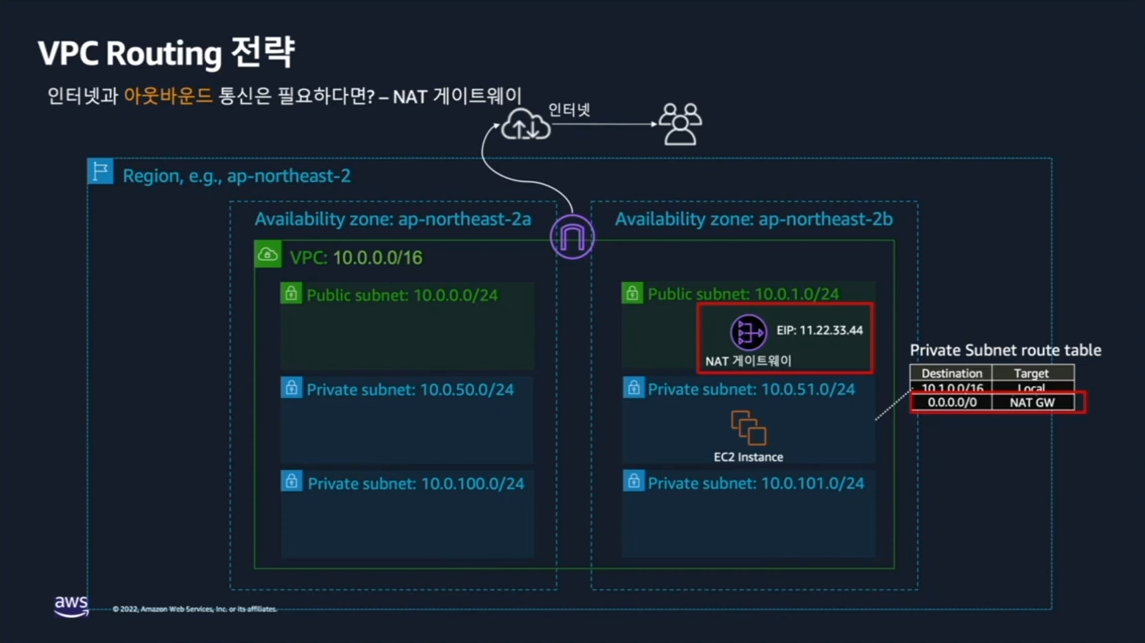 NAT 게이트웨이의 경우는 다른 가용영역의 Instance도 사용 가능하다.