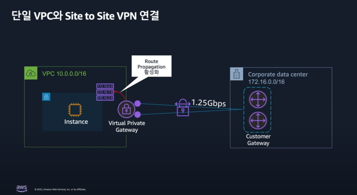 IP Sec이 VGW와 고객의 Gateway 사이에 생성된다.
