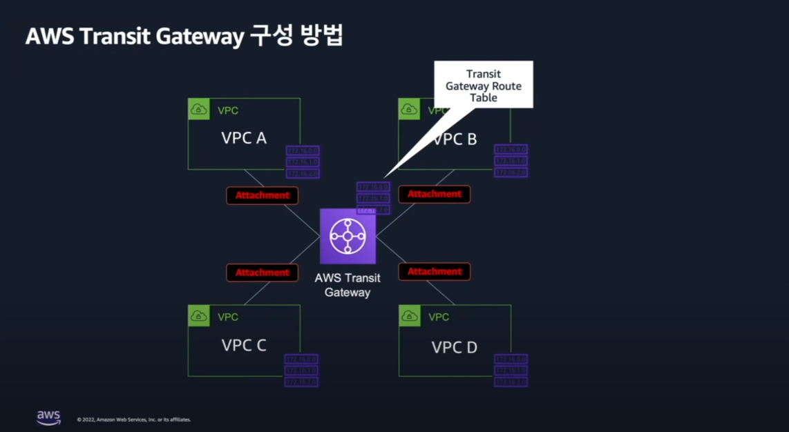 AWS Transit Gateway 구성 방법을 아래와 같이 소개한다.