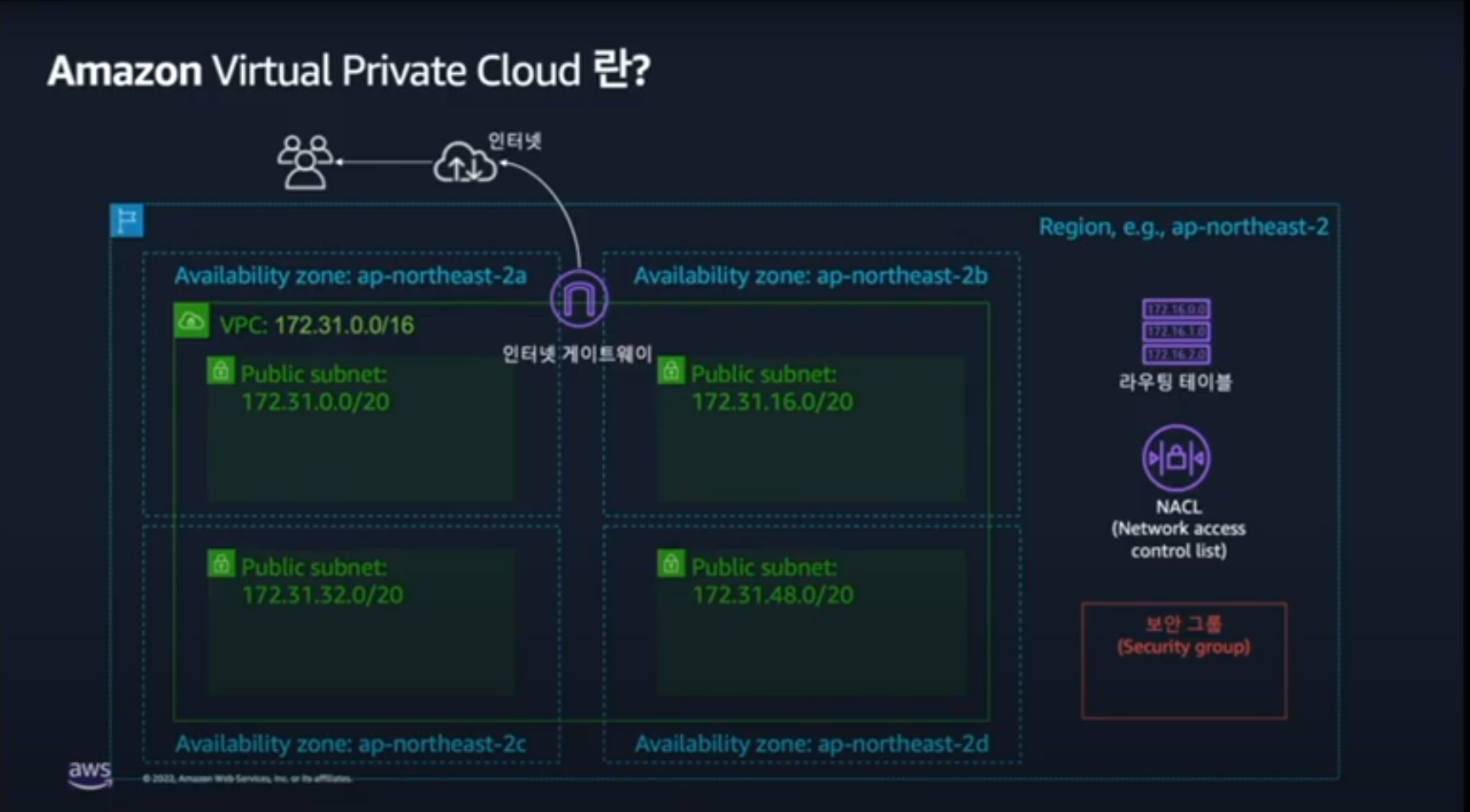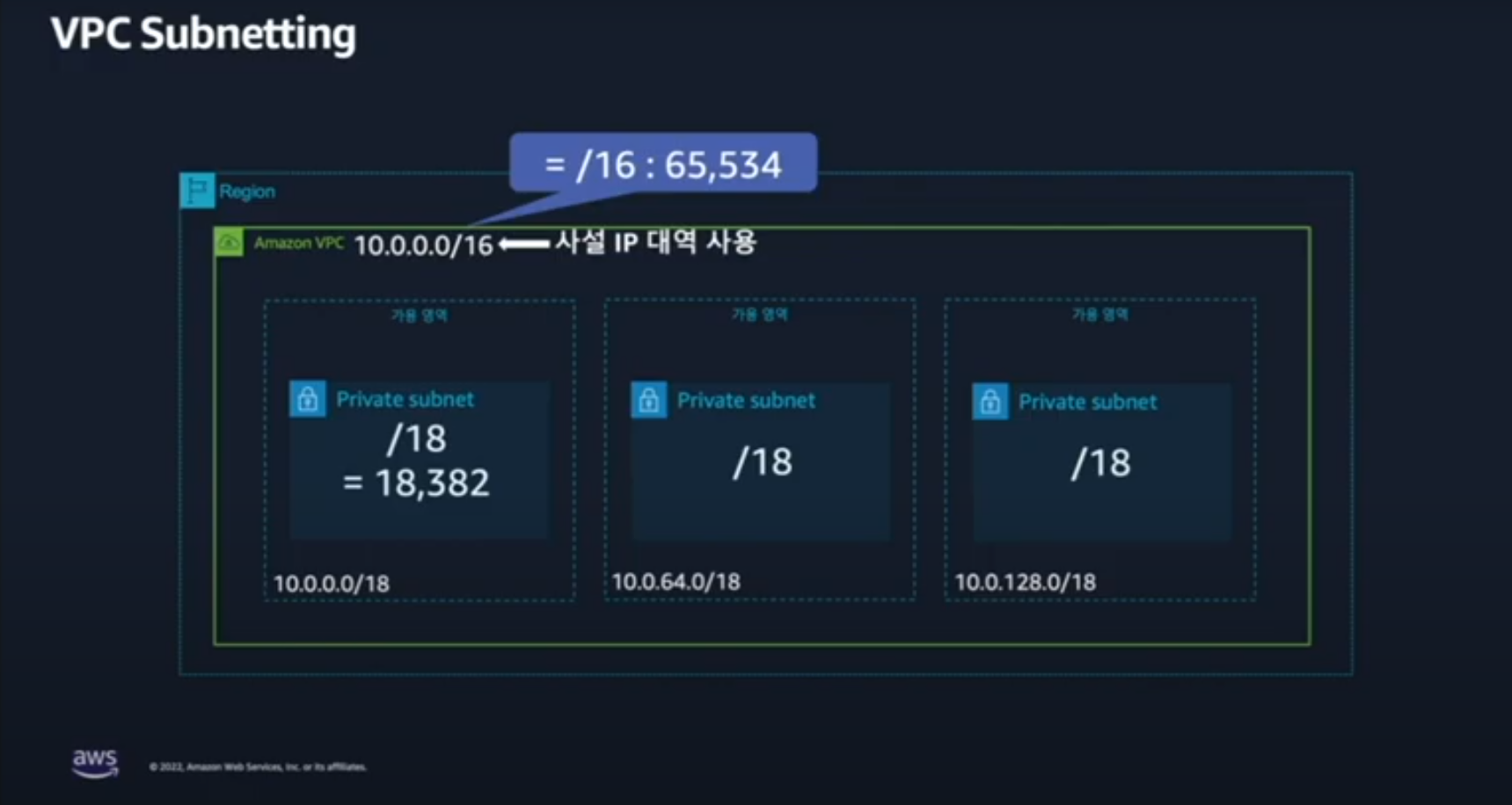 사설 IP 대역을 할당하여 가용영역에 Subnet에 네트워크를 쪼개서 할당한다.