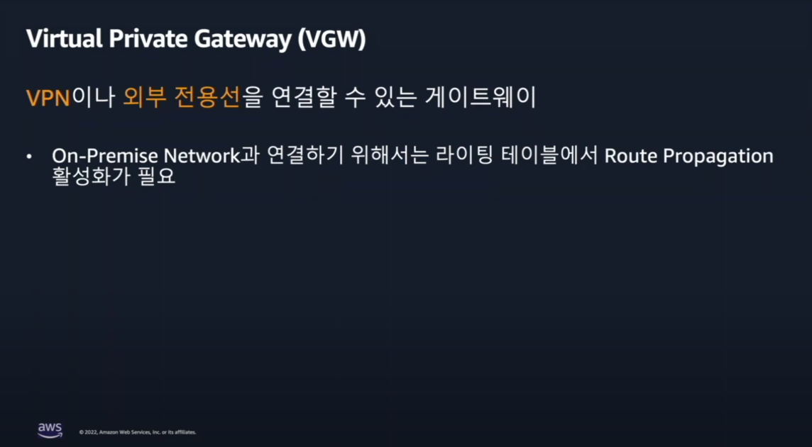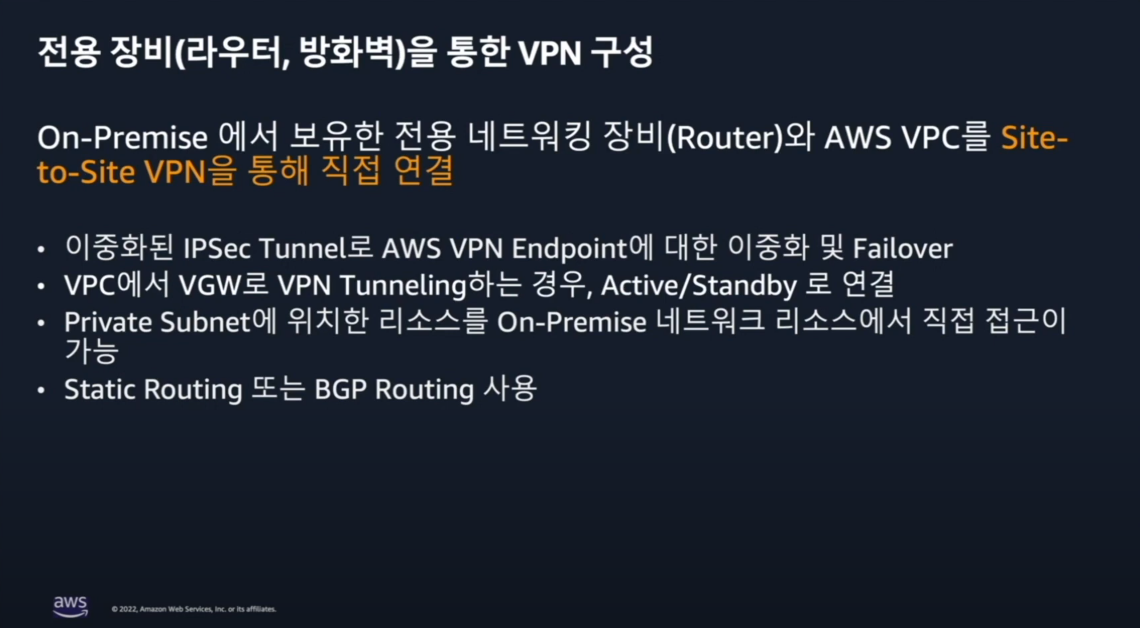 위와 같이 VPC와 VGW를 이용하여 구성하는 방법이다.