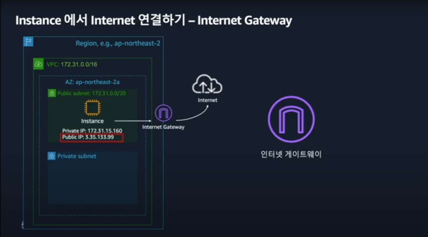 Public Subnet에 EC2가 있다고 하더라도 인터넷 게이트웨이가 연결 되어야만 인터넷과 양방향 통신이 가능하다.