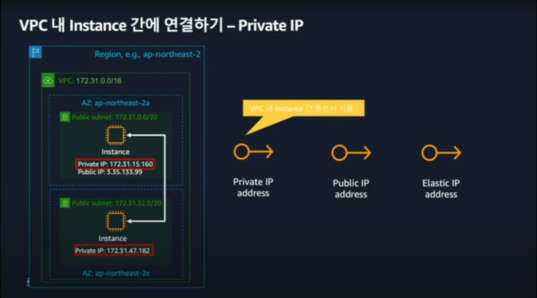 사설 IP는 VPC 내에서 통신할때 필요한 부분이다.