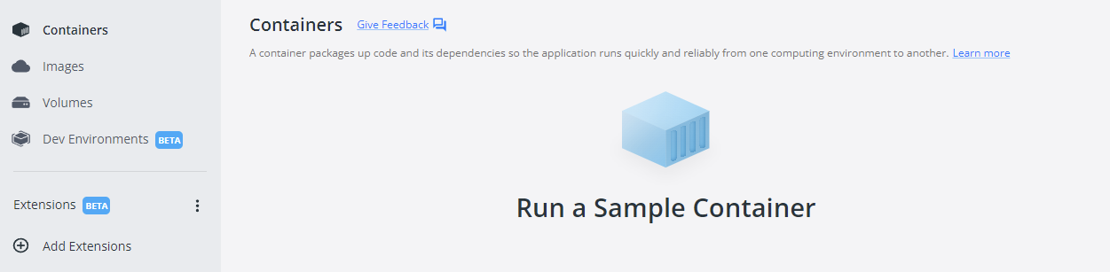 클릭을 한다면 이런식으로 도커 컨테이너가 화면에 뜨면서 시스템 트레이에도 도커가 추가된다.