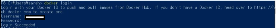 그 이후 docker login을 통해서 방금 가입한 Docker Hub의 아이디와 비밀번호를 입력한다.
