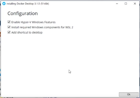 윈도우 환경에서 docker를 실행하기 위해서는 windows에서 제공하는 hyper-v를 사용해야 하며 또한 WSL2 (window subsystem for linux) 를 활성화 해야한다. 그러므로 모두 체크를 한 후 Ok를 눌러준다.