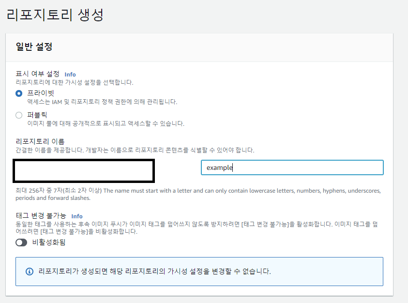 이미지를 푸시하기 위해서는 ECR 리포지토리가 있어야하고 위처럼 리포지토리를 생성한 후에는