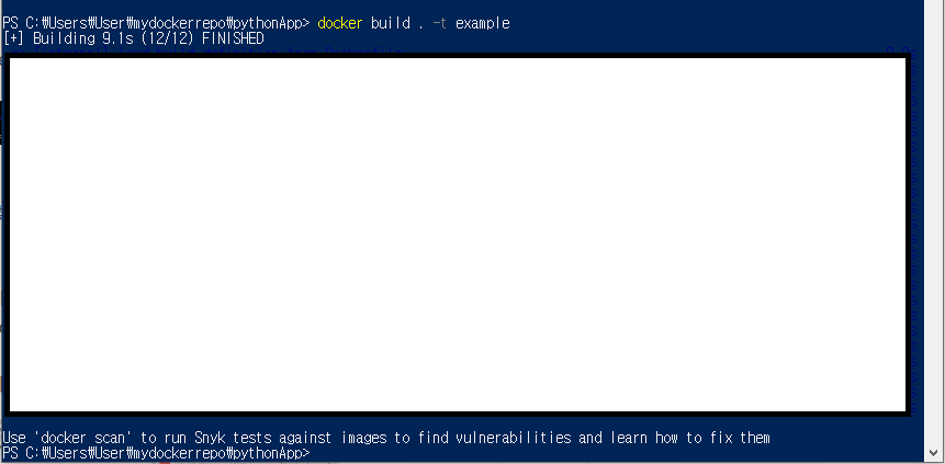 그 후 Dockerfile이 존재하는 폴더에서 위 명령어를 입력하면 도커 이미지 빌드가 완료된다.