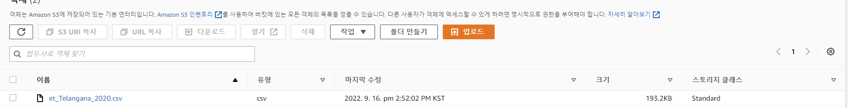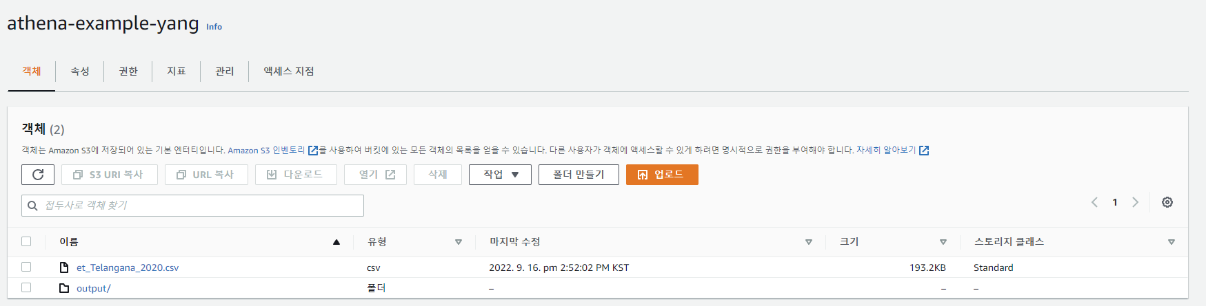 그 후 S3로 돌아와서 위처럼 폴더 만들기를 통해서 output이라는 폴더를 생성 해 주었다.