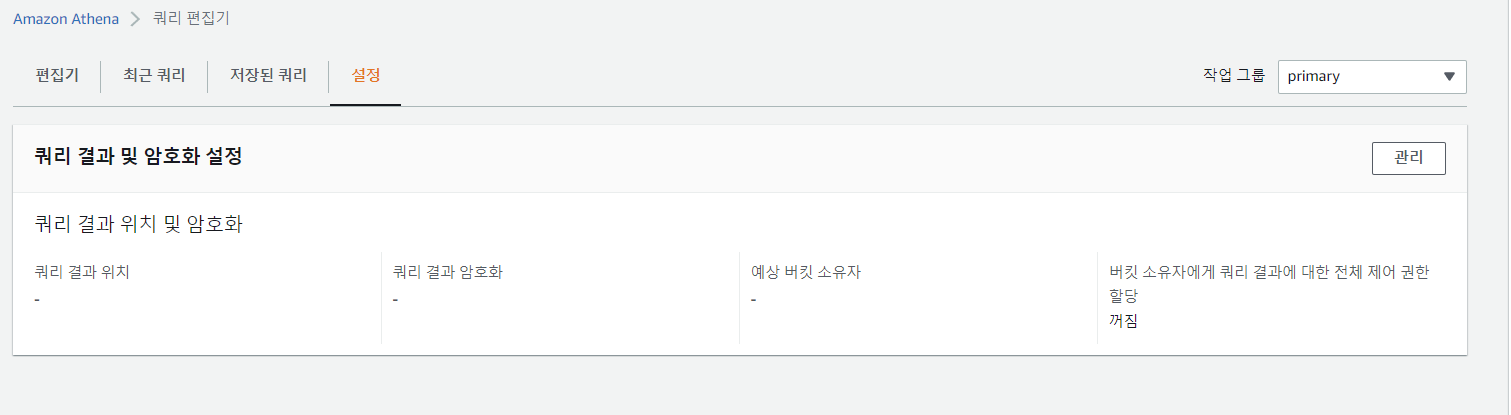 다시 Athena로 돌아와서 설정을 클릭한다. 설정을 클릭한 후 관리를 클릭해 보면