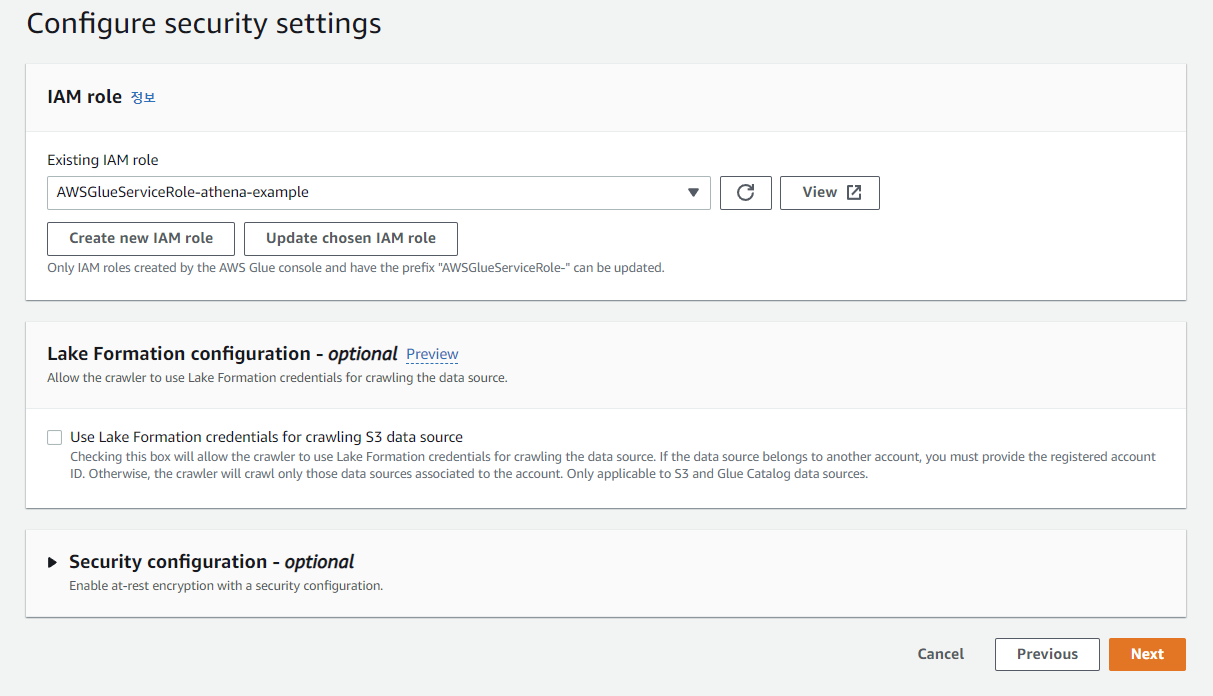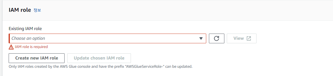 우리는 따로 만든 것이 없으므로 여기서 Create new IAM role을 클릭 해 준다.