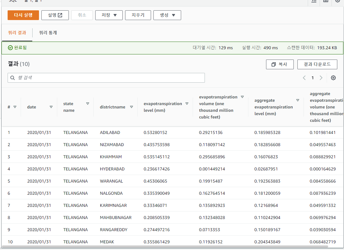 그 후 쿼리를 다시 돌려보면 이렇게 결과가 출력이 된다.