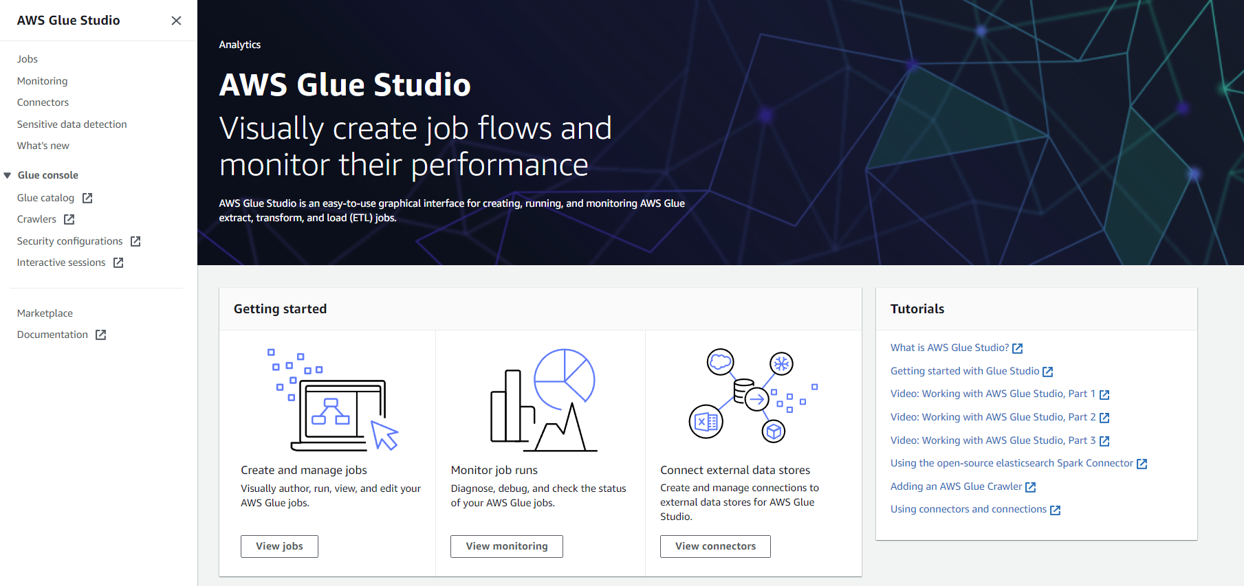 EC2가 인스턴스(컴퓨팅)을 모아놓은 것이고, 람다가 함수들을 모아놓은 것이라면, Glue는 데이터들을 모아서 관리한다고 보면 된다.