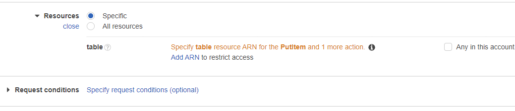 다음으로는 리소스에서 ARN으로 특정 리소스를 선택하여 지정한다.